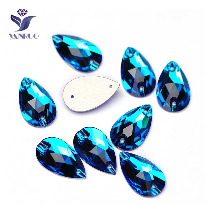 YANRUO 3230 Tutte le dimensioni Blu Zircone Alta qualità a goccia Flatback Cucire su strass di cristallo Strass polacco per la decorazione dei